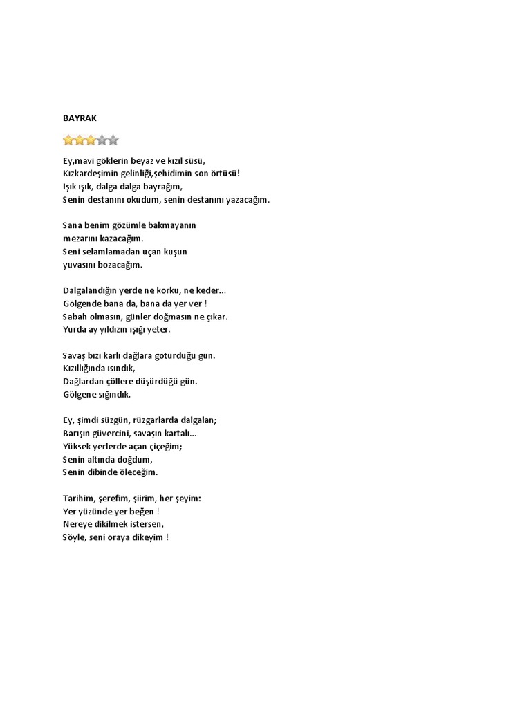 bayrak şiiri incelemesi