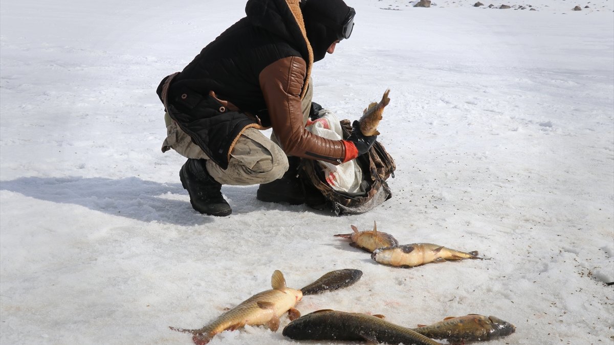 yuzeyi buz tutan nazik golu nde balik avi ahlat selcuklu gazetesi
